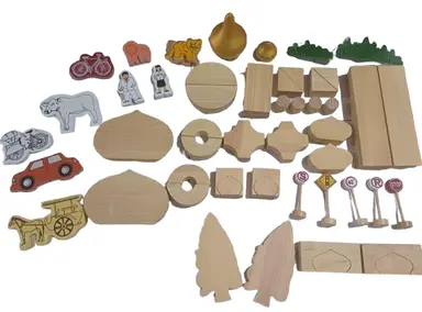 Terdiri dari balok kayu dalam berbagai bentuk sesuai spesifikasi dilengkapi dengan assesorisnya, terbuat dari bahan kayu dan MDF.