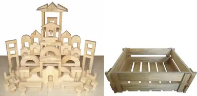 Bahan : Kayu Solid Pinus – Bahan kayu keras tidak mudah berjamur. – Bahan kayu tidak berlubang jarum atau ada titik titik hitam – Bahan kayu tidak bermata. – Bahan kayu tidak pelos. – Warna balok natural. – Terdiri dari berbagai bentuk geometri. – Finishing halus dan menunjukkan presisi yang baik. – Permukaan balok halus. – Kekeringan kayu solid (kadar air):MC 0,6-1,00 – Kemasan : kotak kayu – Dilengkapi dengan petunjuk penggunaan produk – Lulus uji SNI:8124(1,2,3):2010 – Balok seri 300 berisi 300 balok dalam 20 bentuk terdiri dari : – Half unit ukuran 6 x 3 x 6 cm jumlah 36 pcs – Unit ukuran 12 x 3 x 6 cm jumlah 48 pcs – Double unit ukuran 24 x 3 x 6 cm jumlah 8 pcs – Pillar ukuran 12 x 3 x 3 cm jumlah 18 pcs – Quadruple unit ukuran 48 x 3 x 6 cm jumlah 8 pcs – Half pillar ukuran 6 x 3 x 3 cm jumlah 28 pcs – Double pillar 24 x 3 x 3 cm jumlah 8 pcs – Medium column ukuran Ø 3 cm x panjang 12 cm jumlah 24 pcs – Small column ukuran Ø 3 cm x panjang 6 cm jumlah 24 pcs – Double cylinder ukuran Ø 6 cm x panjang 12 cm jumlah 8 pcs – Unit roman arch ukuran 12 x 3 x 6 cm jumlah 8 pcs – Half circle ukuran Ø 12 cm x 3 cm x 6 cm jumlah 4 pcs – Ramp ukuran 12 x 6 x 3 cm jumlah 8 pcs – Roof board ukuran 24 x 1 x 12 cm jumlah 8 pcs – Floor board ukuran 24 x 1 x 6 cm jumlah 8 pcs – Small triangle ukuran 6 x 3 x 6 cm jumlah 32 pcs – Small circle ukuran Ø 6 cm x 3 cm jumlah 8 pcs – Quarter circle ukuran radius 6 cm x 3 cm jumlah 8 pcs – Half curve ukuran Ø luar 24 cm, Ø dalam 12 cm x 3 cm jumlah 4 pcs – Side road ukuran 18 x 3 x 12 cm jumlah 2 pcs.