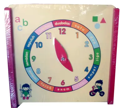 Jam dengan konstruksi yang bisa berdiri sehingga memudahkan anak untuk belajar mengenal jam.