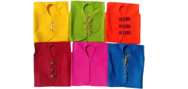 1 set media latih terdiri dari 6 jenis miniatur pakaian dengan berbagai pengancing atau pengikat pakaian.