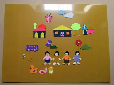 Dilengkapi dengan bahan cerita dari bahan kain flanel sebanyak ± 30 pcs yang terdiri dari karakter orang, hewan, bangunan, tumbuhan dll.