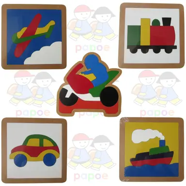 – Pesawat terbang, Kapal laut, Kereta api masing – masing terdiri dari 7 potongan warna – warni,