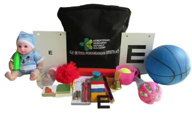 - Pen Light / Senter Lampu LED berwarna putih/kuning, memakai baterai yang mudah dicari di daerah setempat Tas Berbahan canvas hitam dengan resleting, bertuliskan ALAT DETEKSI PERKEMBANGAN (SDIDTK KIT) dilengkapi dengan logo kementrian kesehatan.