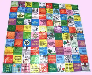 Berupa banner ukuran besar, dengan 2 bidak yang berbeda untuk bias dipakai bermain 2 anak.